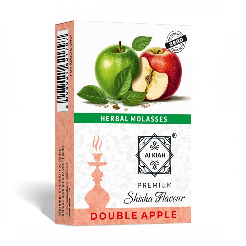 Al-Kiah Double Apple Herbal Shisha Flavor (No Nicotine) delivers the classic hookah taste loved worldwide — a perfect fusion of sweet red apple and crisp green apple notes blended into a smooth, herbal molasses base. Specially crafted for shisha enthusiasts who want a tobacco-free and nicotine-free experience, this flavor provides rich aroma, balanced sweetness, and long-lasting performance.